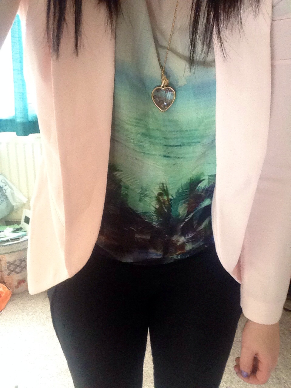 This is an outfit that I wore over the weekend. I thought this is smart/casual but comfy at the same time. Being comfy is key, if your not comfy, your not going to feel good. My t-shirt is from Ted Baker, and is such a lovely silky material. I love the print and the colours. As there is pink in the t-shirt, I decided to go with a pink blazer, which is from Bank. I wore black jeggings, these are rather thick, and are much more comfortable around the waist. I have found because I have worn leggings for so long now, when I wear jeans, they just feel so tight. Anyone else have that problem? My jeggings are from River Island. Then my shoes are from Primark. I love these, they are so comfy despite the wedge and they really do dress an outfit  up. I just love them!