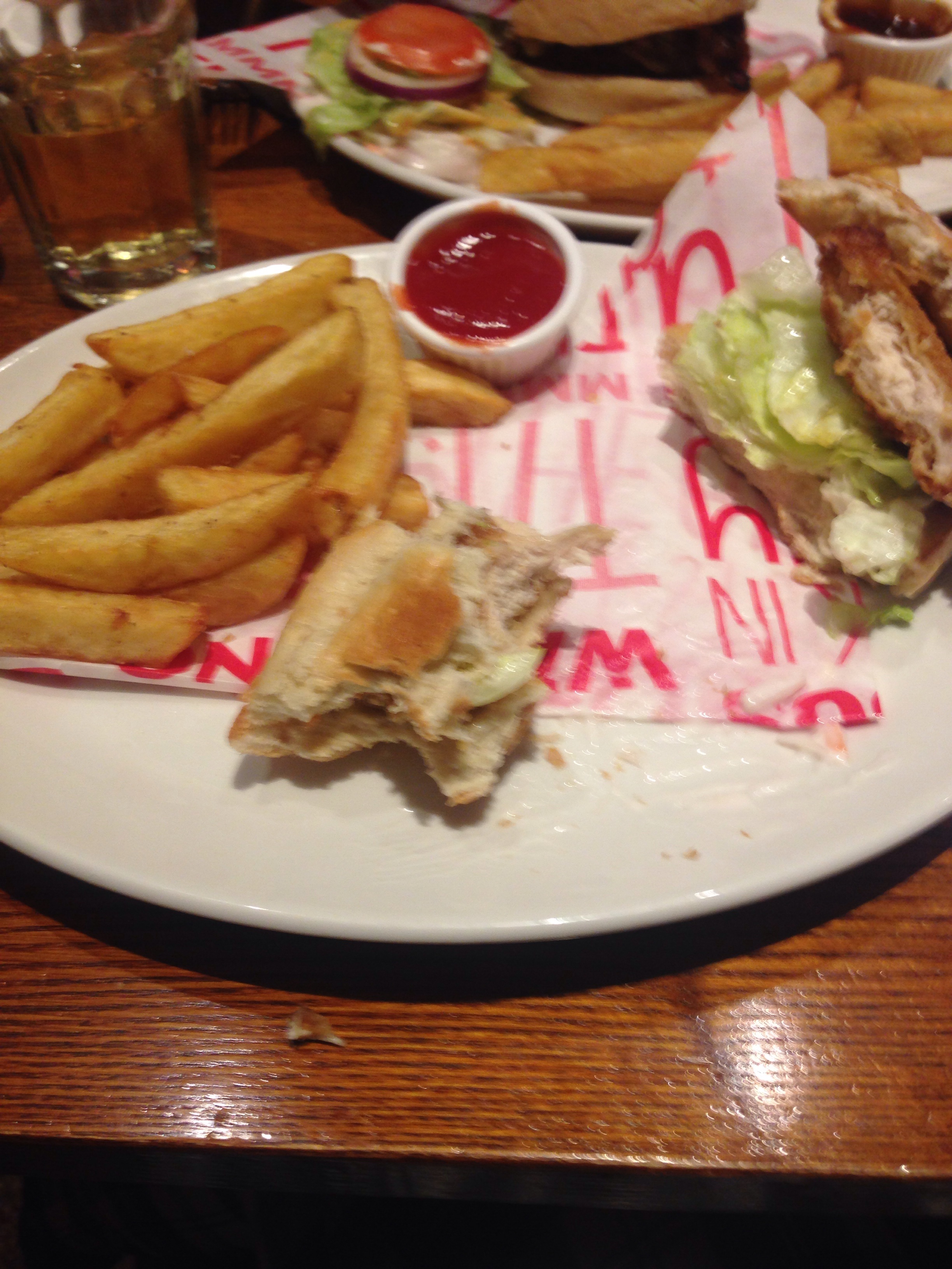 Better late than never right? Here are some photos of what I got up to on Valentines Day. I was also at work till 12. I received a me to you bear and a gorgeous personalised necklace from my boyfriend. His present I got him also went down a treat. He then took me to the cinema to watch 50 Shades…. Big Hero 6. Don’t judge. I shall post a review on that as I usually do, haha for all those fans of kids films. He then booked a table at 8pm at the Burton, where I had a chicken burger and chips and an enormous apple pie about the size of my face! I could not finish it all. I was also sipping on apple tango. I never want to see an apple for a good week! After that we went to our friends house for a bit to celebrate his birthday. Finally got home at midnight and went straight to sleep as I was up since 5am.