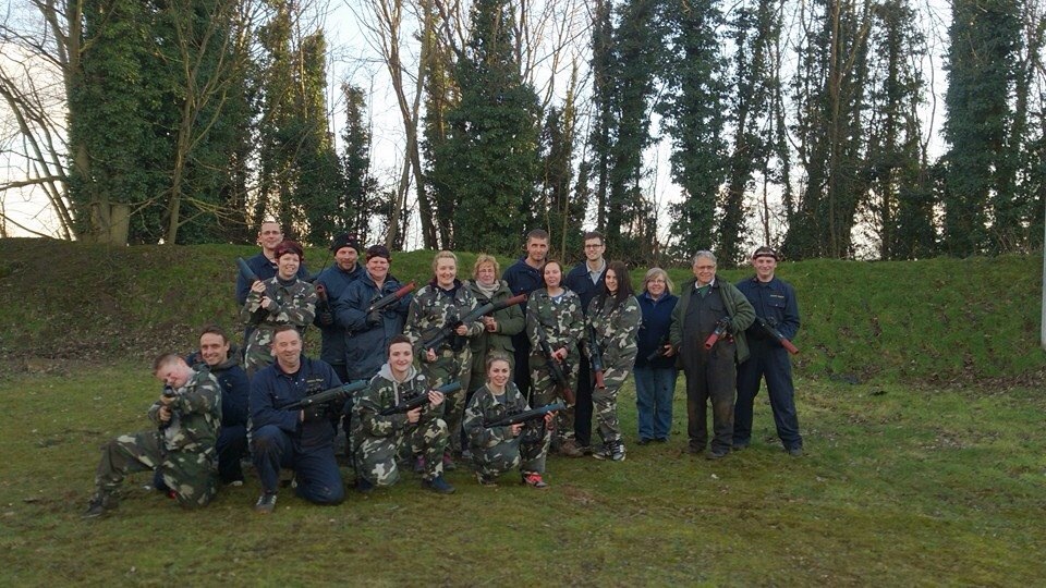 Today was an interesting day. With work we do these things where a person gets picked out a bag (not literally, a bit of paper does) they then have to choose something to do for the month. The person for this months choice was to do outdoor lazer tag. Outdoor lazer tag was is Ancaster. Don’t go with hangover, just a bit of advice there. I was at my friends house previous night and was pretty much a zombie. You get given overalls to put on some had navy, some had camo ones. They also supply gloves for you. There was a group of 18 of us, with 2 people we didn’t know. You can have a group up to 24.