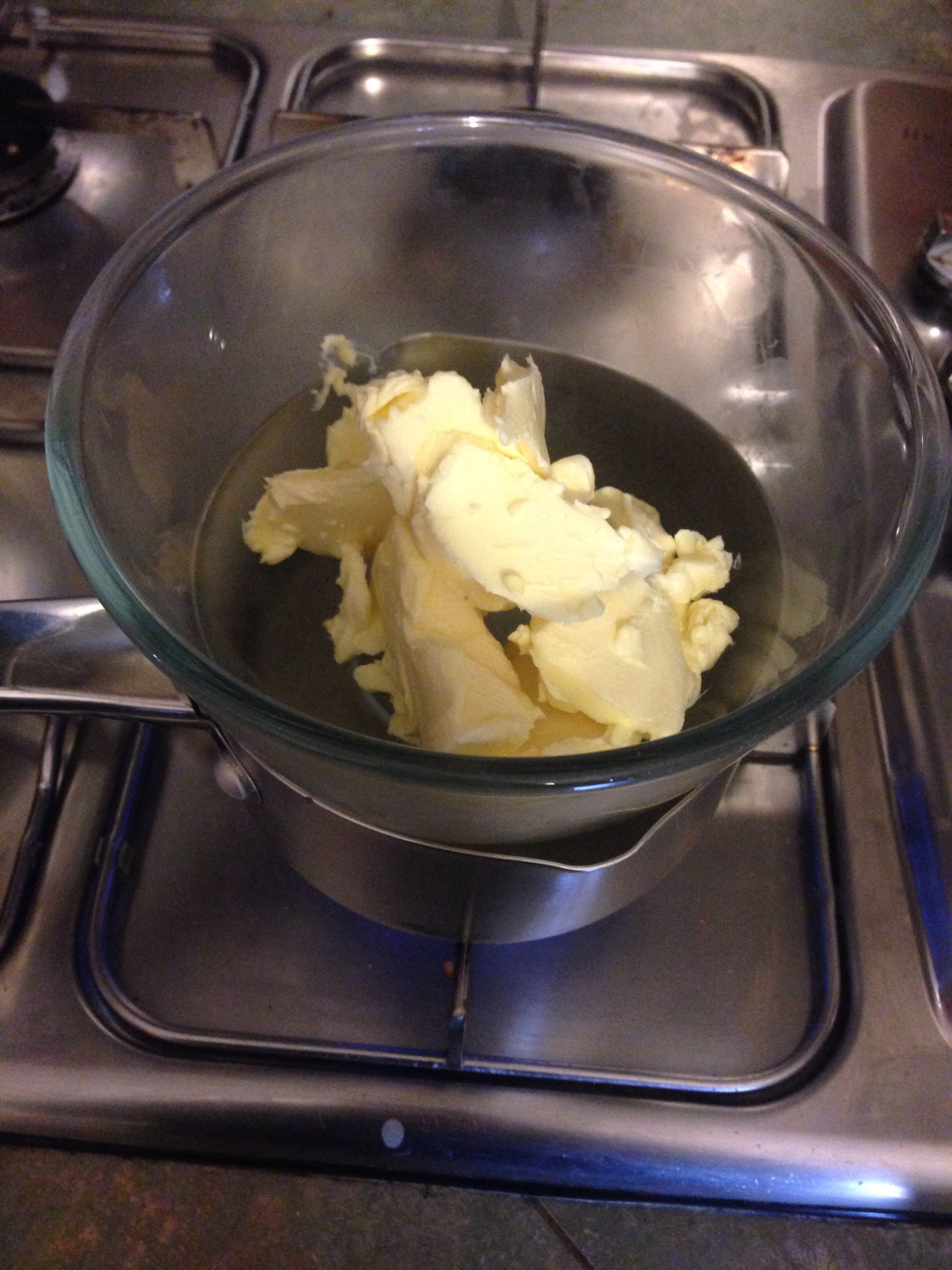1) Preheat the oven to 170 degrees. Put the butter in a heatproof bowl and place on a saucepan of just-boiled water.