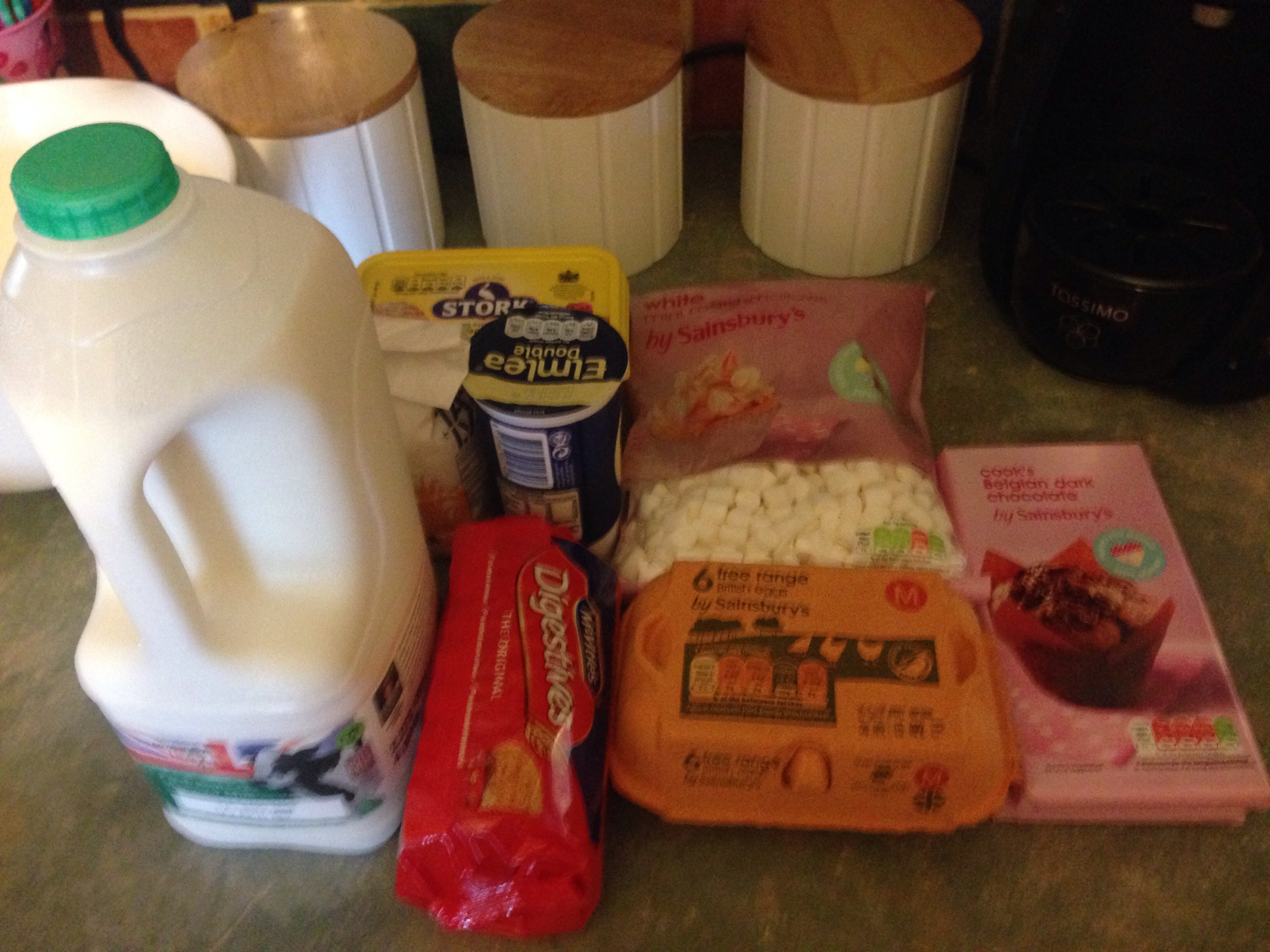 This is the second recipie I am posting on littlemissminor and this is yummy scrummy chocolate marshmallow pie. This is for all the people with sweet tooths. As I got a great response from my first baking post, I thought I’d share another one with you. This is fairly easy to make. It does taste a bit like a cheesecake. For me I could only have tiny slithers of this at a time. It’s the kind of thing you see at swanky restaraunts where they only give a small portion. There’s a reason for that. You can cut this up however you want and could use a pie dish, but I just used a normal cake tin. You don’t have to use marshmallows on the top, you can put whatever you want on it. This would be good for a sweet treat or for if you have guests coming.