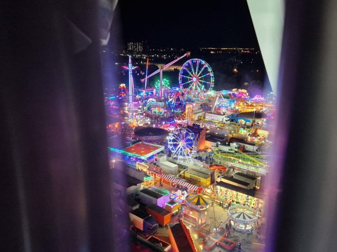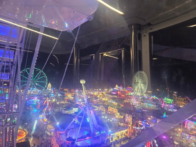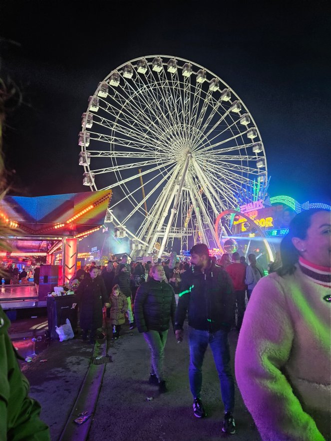 On to the rides. There are lots to do for all ages and they go from tamed to rides for the thrill seekers. There are plenty of family friendly rides for everyone to enjoy. I thought the rides were very reasonably priced, especially the ones for children. I won’t name all the rides as we’d be here for ages but ones you will find are fun house £3, rollercoaster £5, waltzers £4, dodgems £5 per car, ghost train £4, teacups £2.50, big wheel £5 – £7 as there is quite a few there, fusion £4, twister £2.50, vertigo £5, top spin £4, air £6 and carousel £2. They have the biggest wheel in Europe there which is what costs £7 each, with a photo opportunity as well if you wanted. Last year we really enjoyed the experience, however this year it felt more about taking peoples money and cramming different groups into the same pod, which was disappointing as last year the two of us got our own one. There wasn’t even a queue nor were all the pods being used as they were shutting them off. We then decided to go on one of the smaller wheels. I say small, they are still high, but we had such a better experience and was able to take pictures and just enjoy it. Both wheels went round 3 times, and I must admit it was a windy night, so every time it stopped the pods were rocking a fair bit haha. We also went on the dodgems which is a free for all, so when they stop everyone rushes to get a car, but they are so much fun and a ride that has you laughing the whole time!