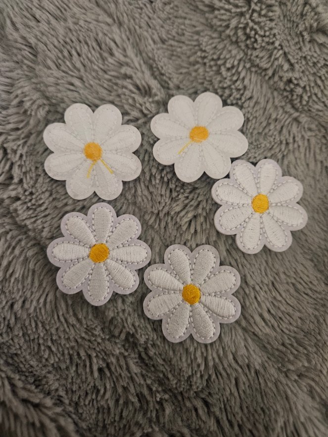 I am a girl who always seems to loose their hairbands, and I can’t be the only one right? I don’t know what it is, I can buy a pack of like 20 and I’ve scattered them around the house like some kind of Easter egg hunt, however I have forgotten where I’ve left them. It was upon looking for one of these hairbands when I had the idea of being able to customize my own scrunchies. 14 year old me, taking up Textiles for a GCSE and hating it, would have never of thought I would then have worked in embroidery for nearly 10 years, love it, and then have a go at customizing her own hairbands. It’s funny how life turns out, and the things you once hated, you sometimes go on to enjoying! I decided to go on Amazon, as they are perfect for crafty bits and to buy items in quantities. They had lots of different styles, colours, sew on bits on there but in the end I settled for these daisies and black scrunchies, perfect for Spring and the upcoming Summer months!