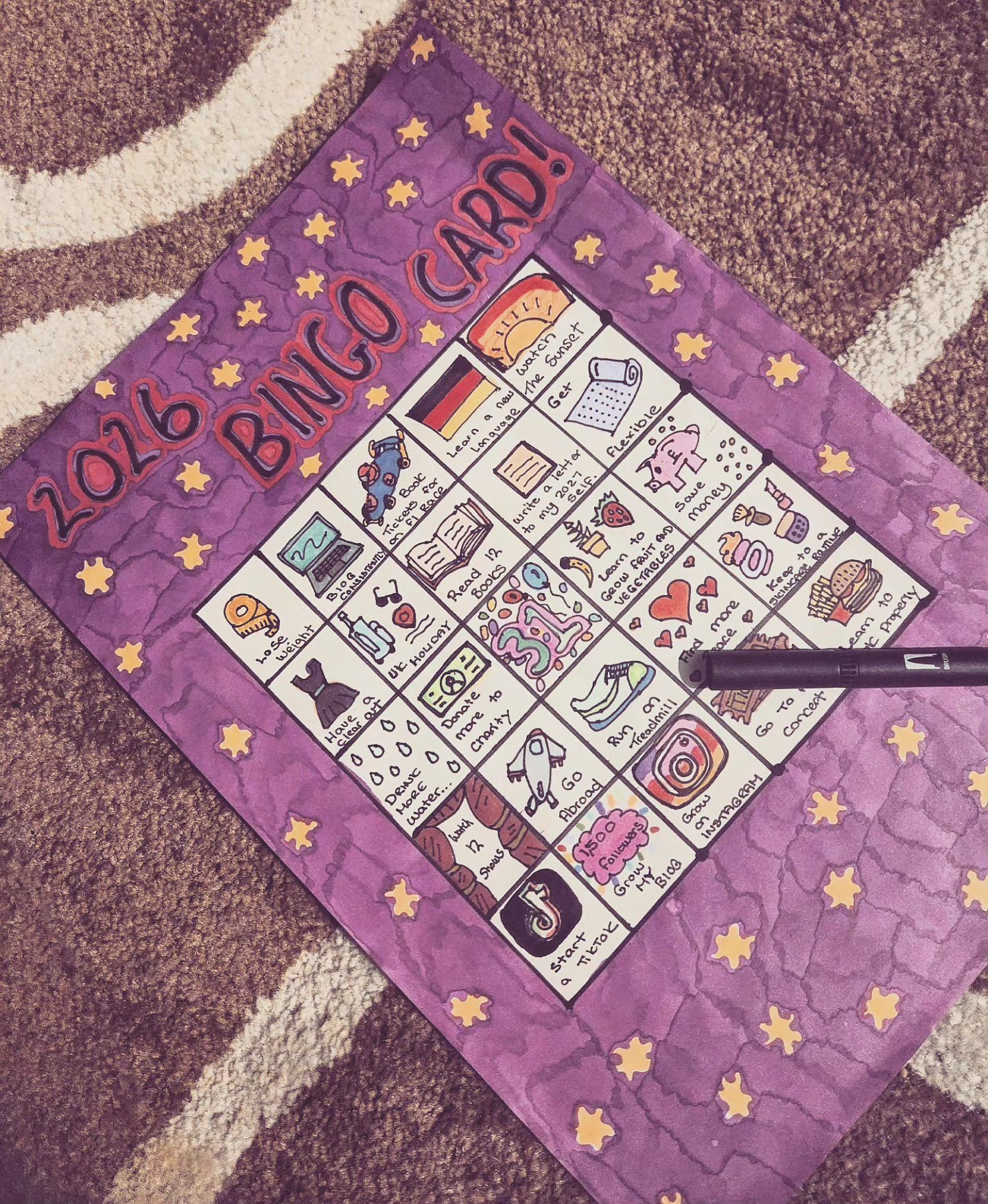 Happy very Belated New Year Everyone! I hope 2026 is everything you want it to be. I just wanted to say a big welcome to everyone new here as I have noticed some newer viewers! I hope you stay and get something out of reading my blog. Towards the end of the year and the beginning of the new year a lot of us start thinking about our goals for the next. If you don’t want to set goals, there’s nothing wrong with that. It can feel like extra pressure to perform sometimes. However, I very much like having goals to work towards too. For me it helps me feel focused and proud when I see progress. I saw bingo cards doing the rounds on TikTok. I fell in love with the idea and thought I would have a go at making one. It was a very fun process! It’s not too late to make one at all. It’s taken me a while to get going this year. I am confident this won’t put me behind in achieving my goals. I don’t expect to complete the whole card, as 25 goals is a lot! If I can get a row crossed off, that would be an achievement for me and a sense of accomplishment. So let’s see what I’ve got on there!